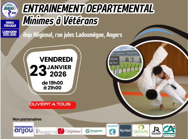 19h-21h: Entraînement ouvert judo, jujitsu, ne waza (minimes à vétérans)