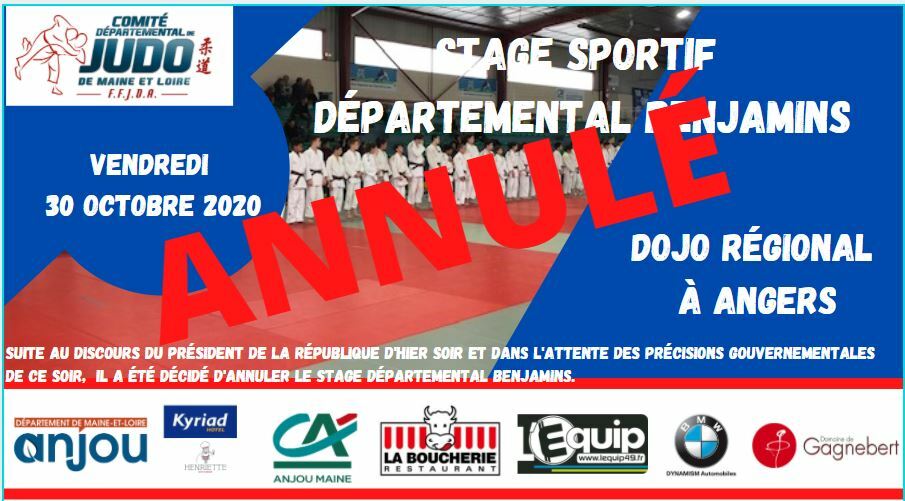Suite au discours du président de la république d'hier soir et dans l'attente des précisions gouvernementales de ce soir, il a été décidé d'annuler le stage départemental benjamins.